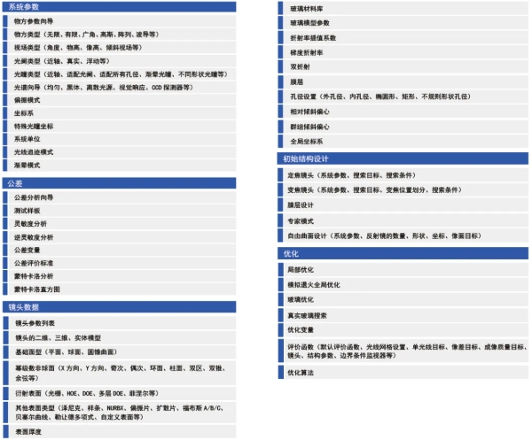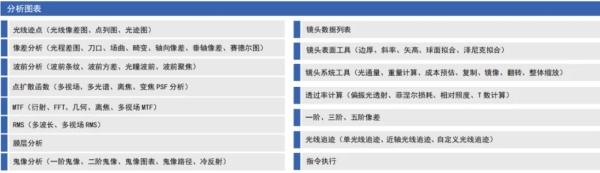 軟件中的工具部件都與設(shè)計過程中的重要步驟相符合,從而構(gòu)成了軟件中的基礎(chǔ)功能。其中分析、優(yōu)化和公差工具包含了一系列特定公差內(nèi)基于物理算法的分析、仿真、以及優(yōu)化光學系統(tǒng)。